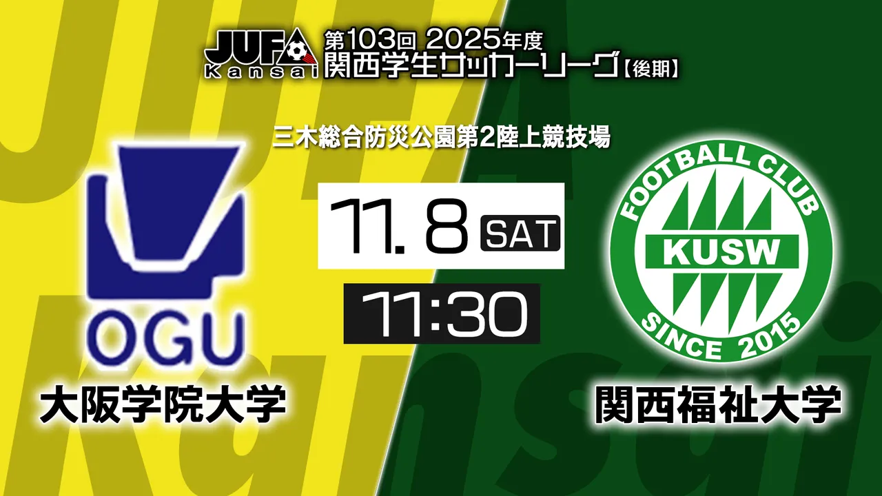 【2025後期第10節】大阪学院大学vs関西福祉大学|2025.11.08